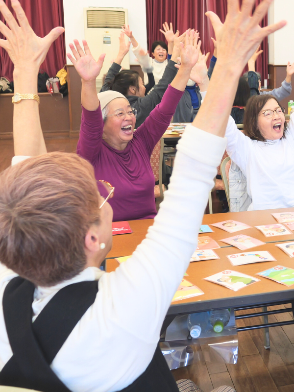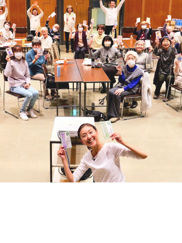 健康長寿を目的とした介護予防講座の出張を行っています。当協会の認定講師がお伺いして60〜90分ほど学びありエクササイズありの楽しい出張教室です。座っても易しい体操なので、誰でも声を出してリフレッシュと健康増進に取り組めます。